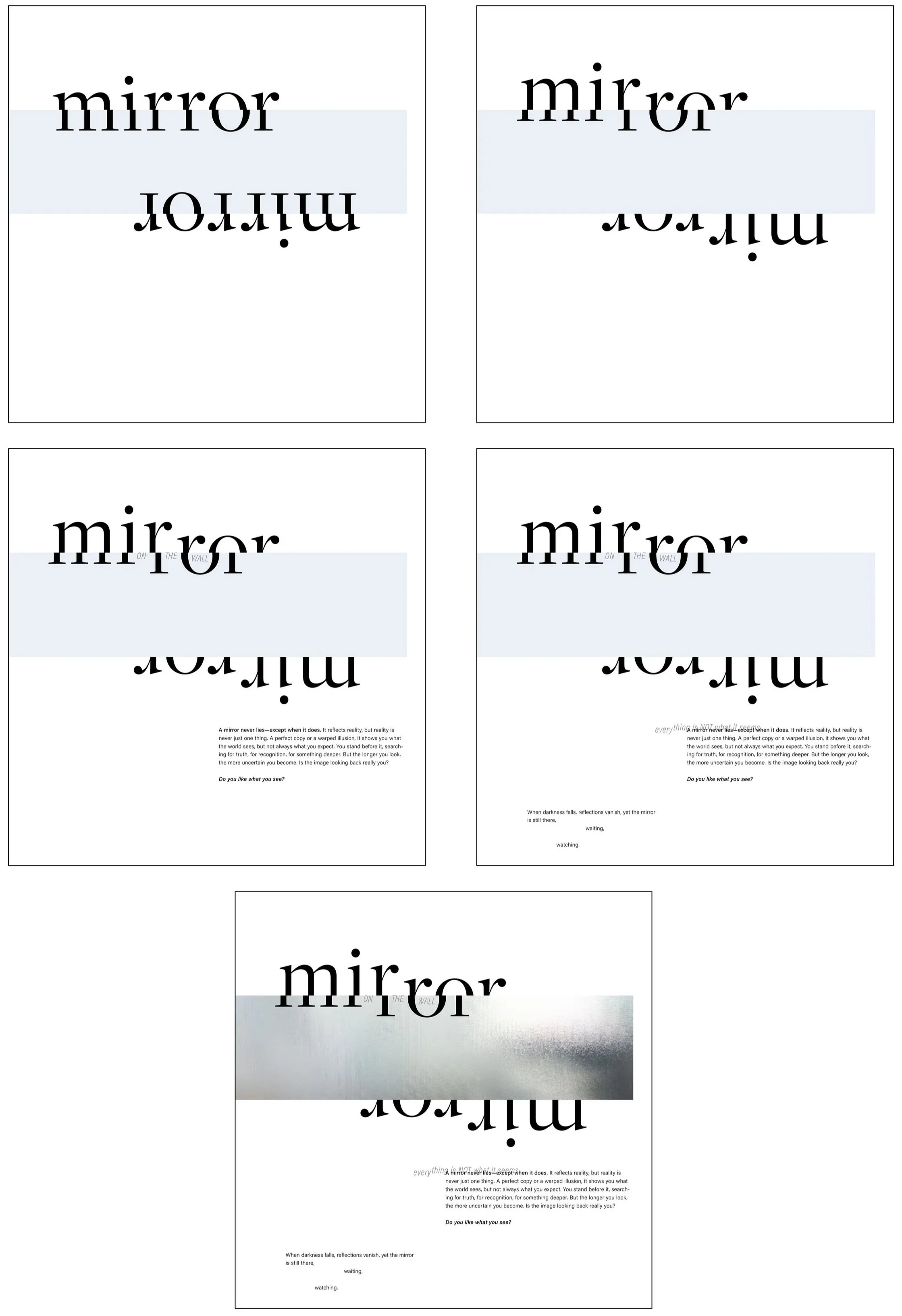 Exploring the literal and cultural definitions of the word mirror through a typographic poster.