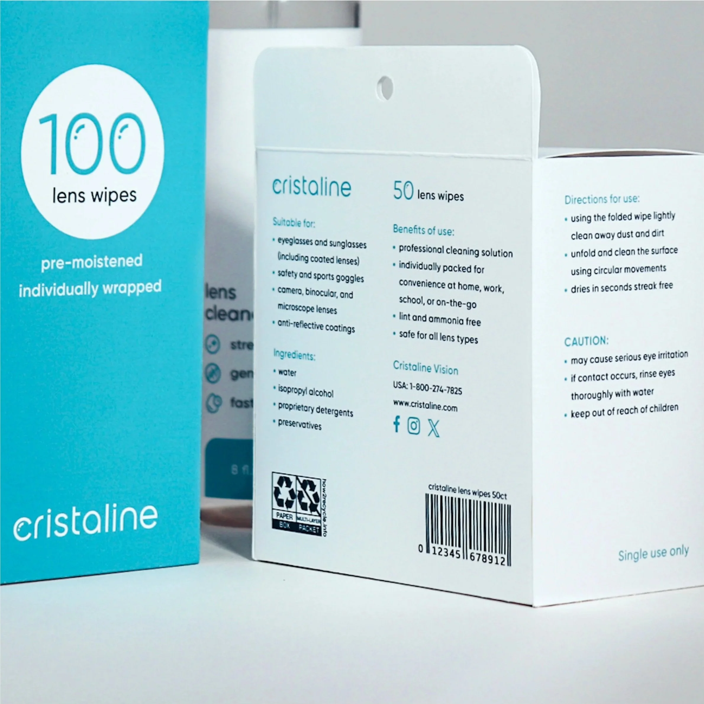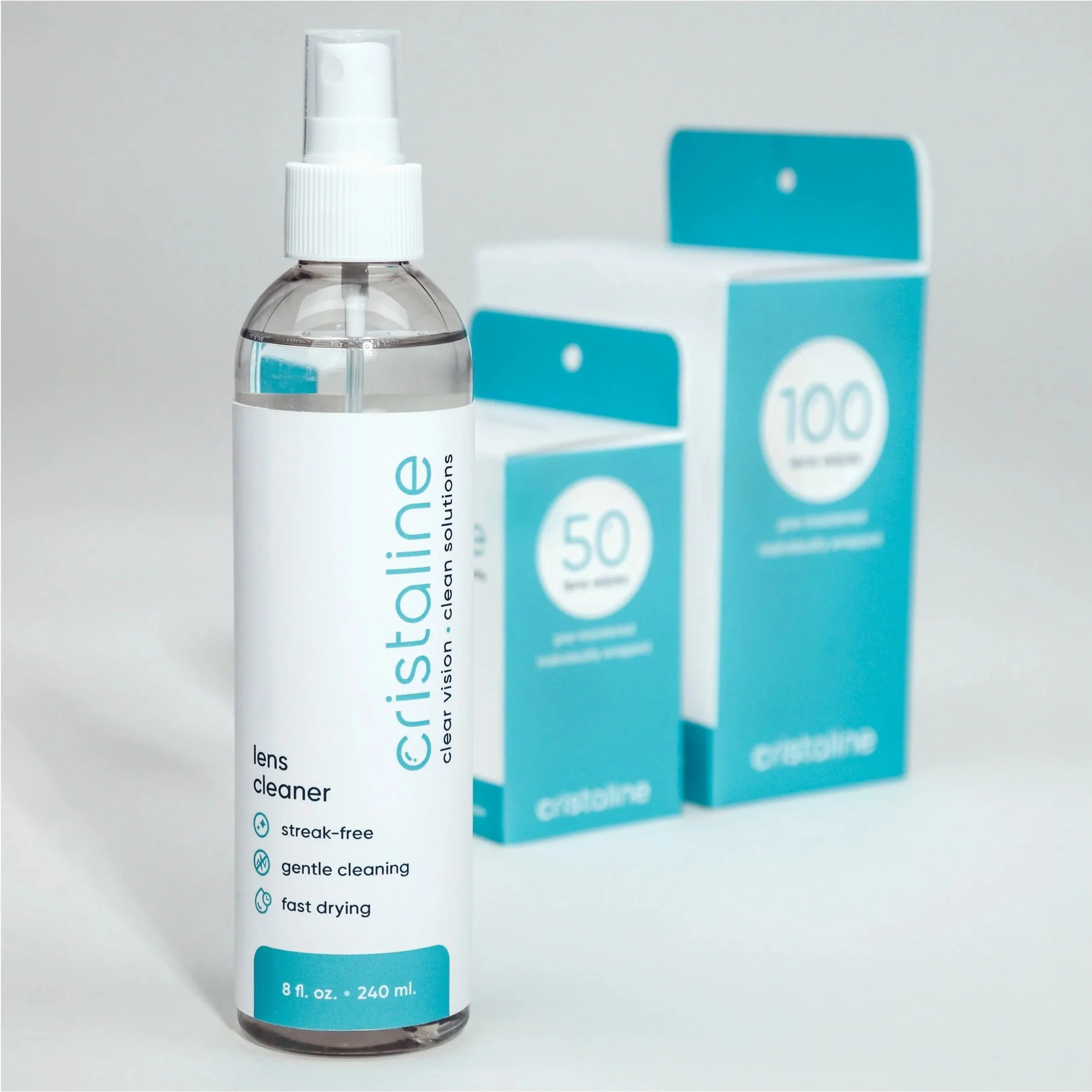 Cristaline, “Clear Vision, Clean Solutions,” provides high-quality care products, including lens wipes and cleaning solutions, for all eyeglass wearers. Keeping your glasses clear can sometimes feel like a challenge, and using rough fabrics like t-shirts for cleaning can damage lenses over time, leading to costly replacements. Cristaline’s products help customers protect their lenses and extend the life of their eyewear. Rooted in approachability, reliability, and purity, the brand aspires to be a trusted name for everyday eyewear maintenance.